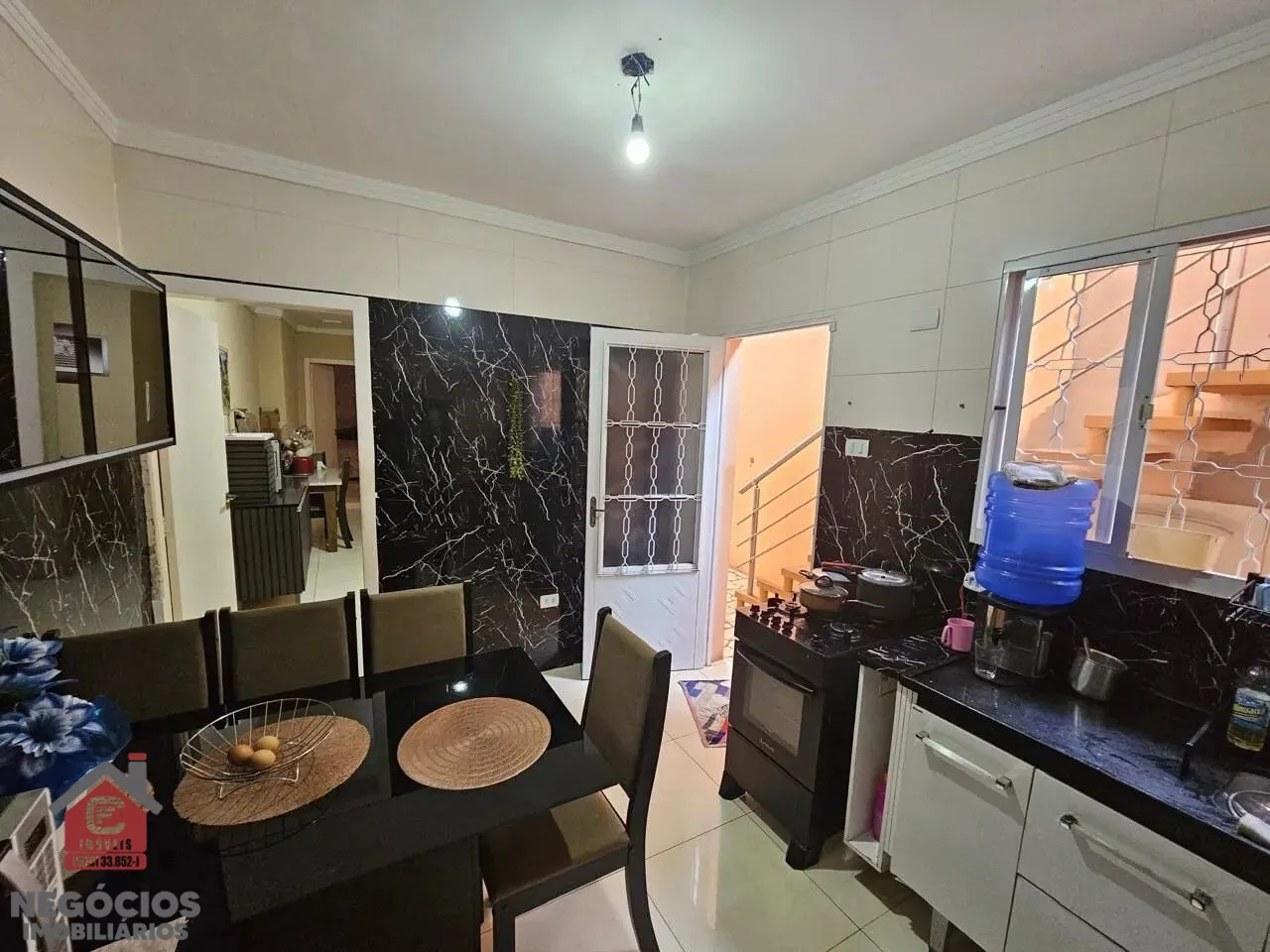 Piso inferior: 02 quartos, sala, cozinha, banheiro social, área de serviço coberta.