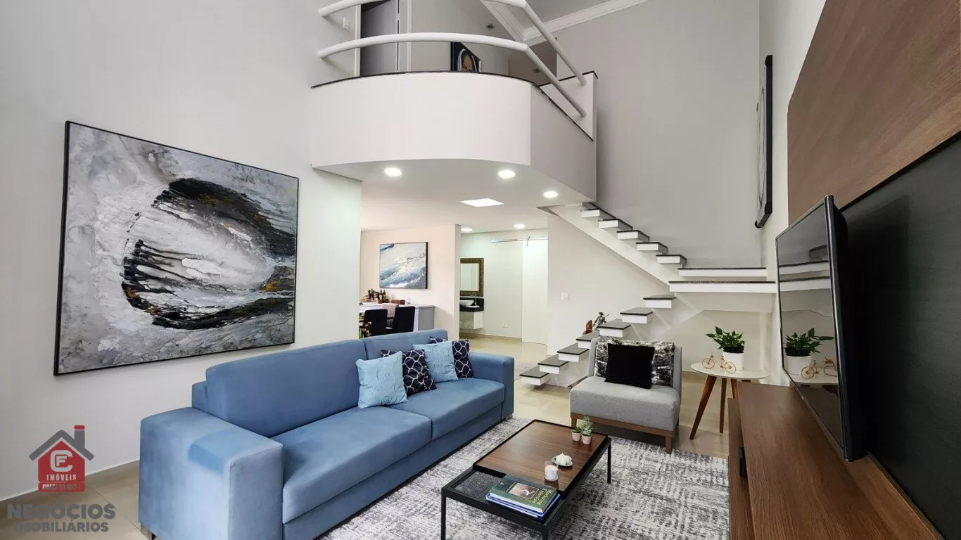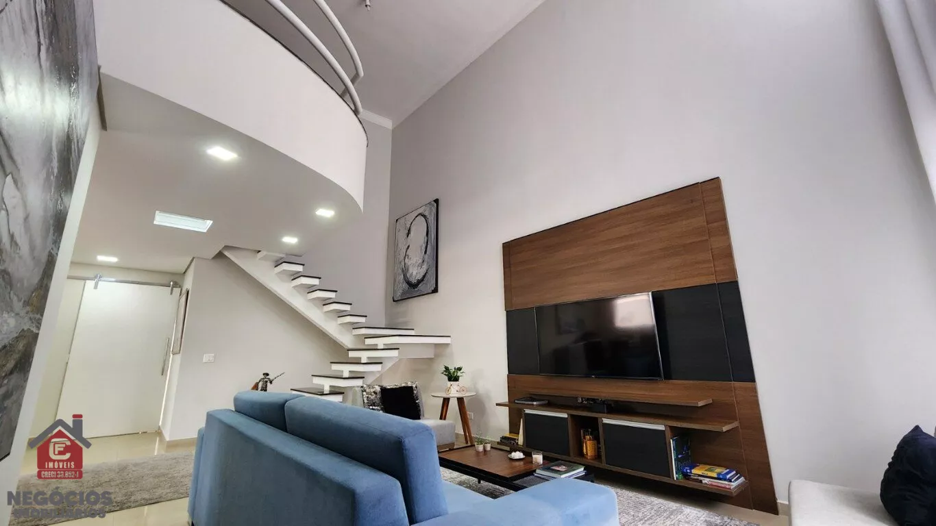 🔹 Sala ampla com 2 ambientes e pé-direito duplo, trazendo imponência e muita iluminação natural