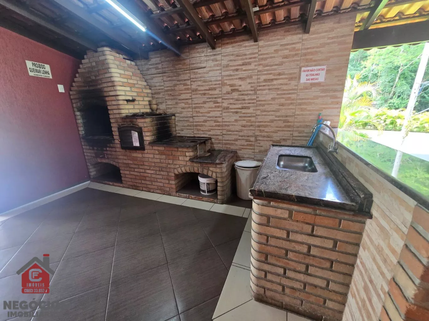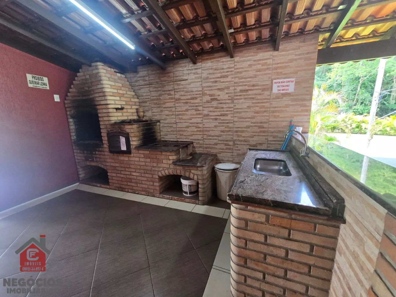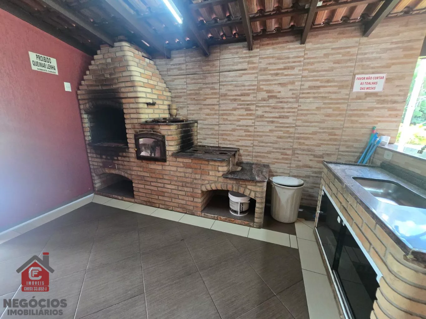 ✅ Área gourmet com churrasqueira e fogão a lenha